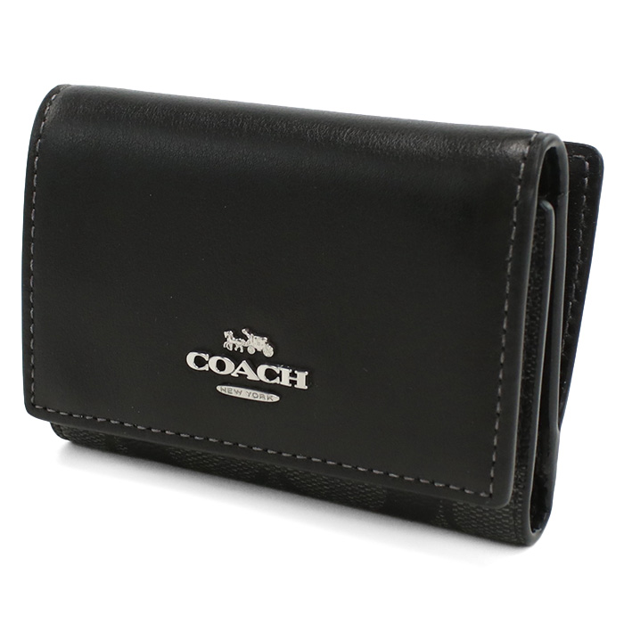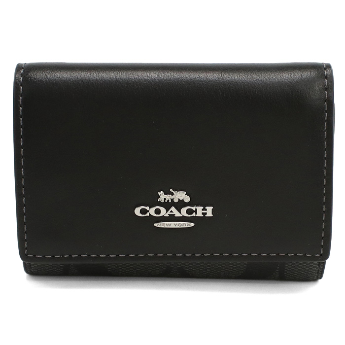 COACH コーチ マイクロ ウォレット・シグネチャー 三つ折り財布小銭入れ付き CM761 SVTSQ レディース ブラック